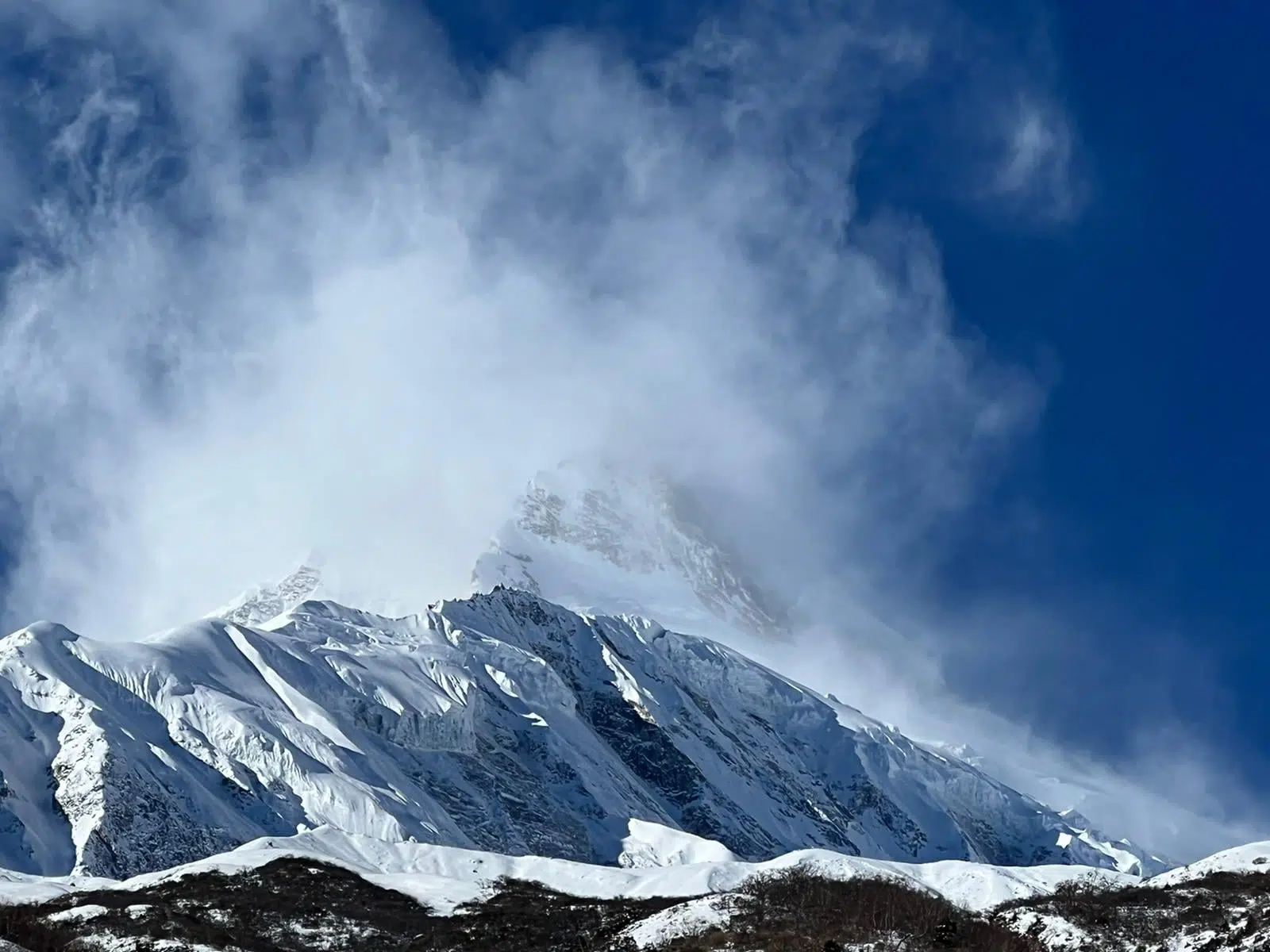 El Manaslu está colgado de nieve y el riesgo de avalanchas -cinco sobre cinco, en escala europea- obliga a no tomar decisions precipitadas.