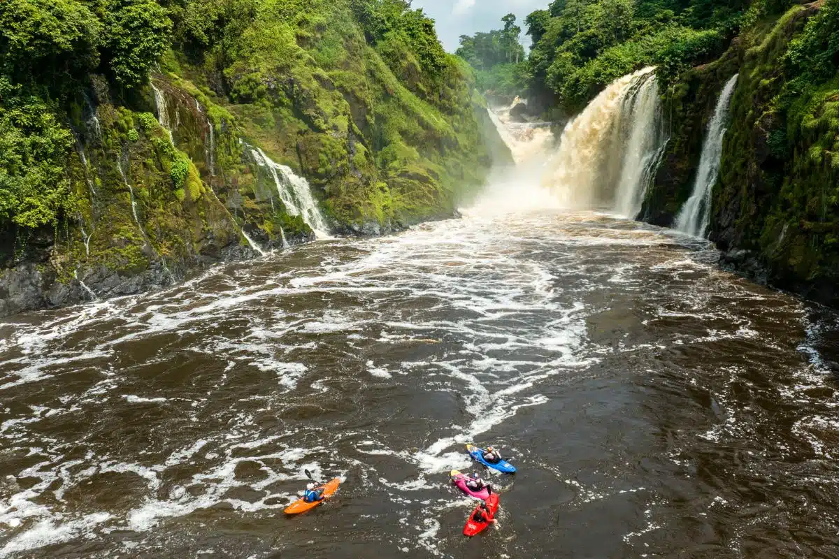 Al llegar al kilómetro 83, encontraron las cataratas de Mingouli, apodadas una de las «Maravillas del Ivindo». Esta sección no solo puso a prueba las habilidades técnicas de los kayakistas, sino también su capacidad de resistencia ante la fuerza implacable del río. Con cascadas imponentes y aguas turbulentas, Mingouli representó uno de los tramos más desafiantes de la expedición.