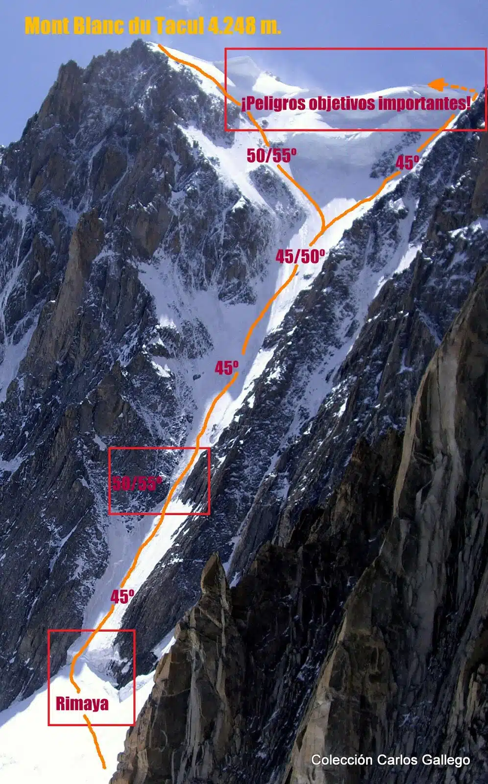 El corredor Gervasutti, ruta habitual en el Mont-Blanc du Tacul