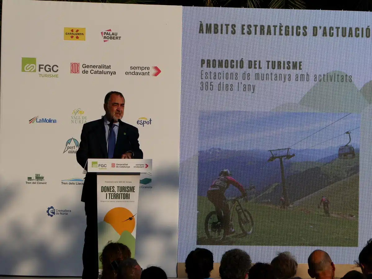 FGC Turisme oficializó en los Jardins del Palau Robert de Barcelona la puesta en marcha de los equipamientos de sus seis estaciones de montaña -La Molina, Vall de Núria, Vallter, Boí Taüll, Espot y Port Ainé- para el verano 2023. La puesta en escena fue dinamizada por el coloquio “Dones, Turisme y Territori” conducido por la periodista Elisabet Carnicé y en el que intervinieron Núria Picas, Cesca Figueras, Rosalia Farré, Elena Julià y Mònica Santa Eulàlia.