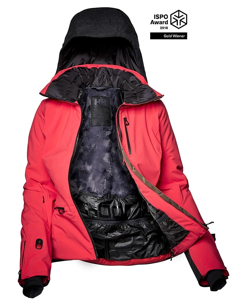 Una de la nuevas chaquetas Helly Hansen resultóo ganadora del «Premio de Oro» de la colección Otoño/Invierno 2018. El jurado de la ISPO, formado por un total de 42 jueces de 15 países y tres continentes, eligió la W Paradise Heat Jacket como la prenda más votada en la categoría de deportes de nieve.