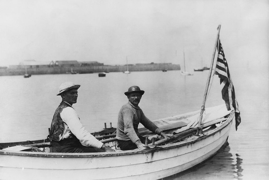 Frank Samuelsen y George Harbo partieron de Battery Park, Nueva York, y tocaron tierra en Saint Mary’s, una de las islas del pequeño archipiélago de las Islas Sorlingas (Inglaterra), tras 55 de navegación