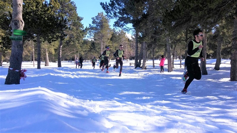 El circuito marcado de Guils Fontanera presentaba un aspecto inmejorable para la competición de raquetas de nieve.