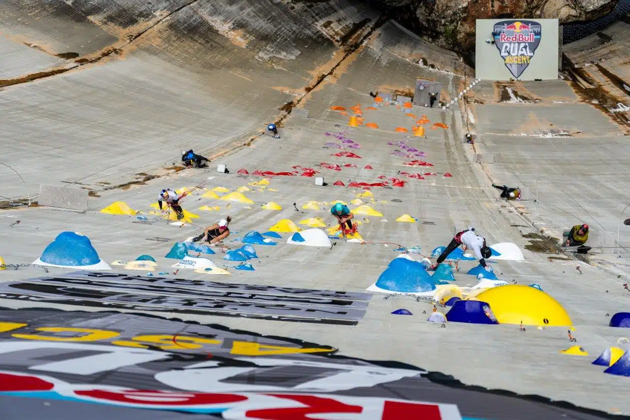 En la especial competición de la Red Bull Dual Ascent dos cordadas escalan en paralelo dos vías idénticas sobre la espectacular pared de la presa Verzasca y gana la pareja que llega más rápido arriba. Los miembros de la cordada deben liderar un largo cada uno y todos los largos deben encadenarse. No obstante, si un escalador cae debe regresar a la reunión de ese largo y volver a iniciar la escalada. Cada vía tiene 180 metros, divididos en seis largos, con dificultades desde el 6c hasta el 8b.