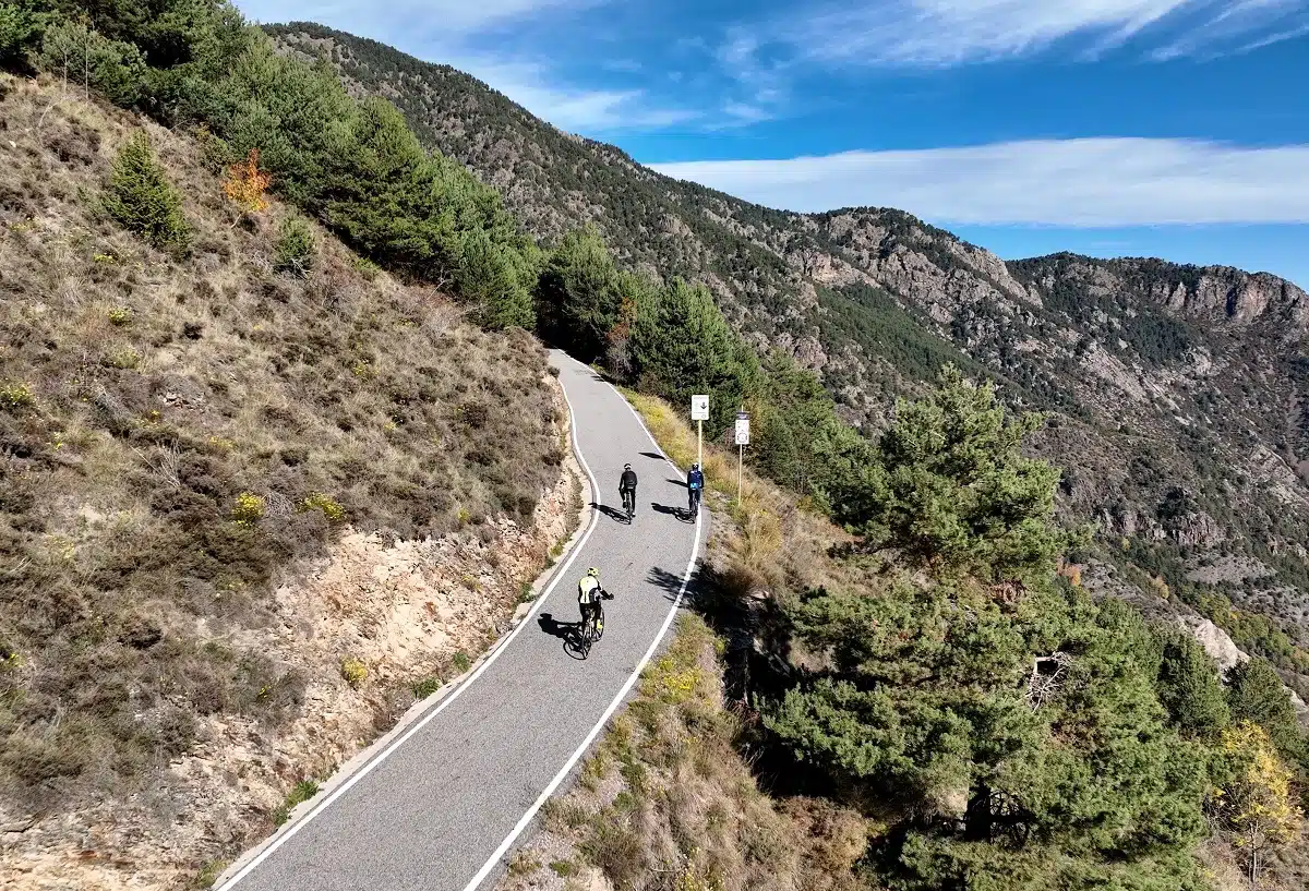 Los primeros kilómetros del puerto son bastante duros debido a la pendiente y con rampas por encima del 10%. Después de la primera subida, hasta llegar al Coll de Jou (1.139 m), tendrás unas buenas panorámicas para disfrutar del paisaje del Valle de Valira. Luego hay un pequeño descenso y se vuelve a subir hasta los 1.500 metros al final del recorrido. El tramo más inclinado tiene una pendiente de 12,4%.