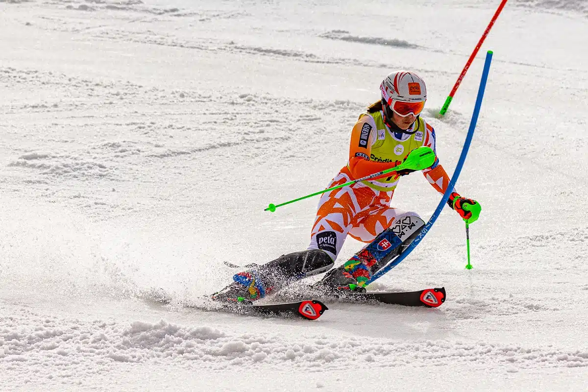 Mikaela Shiffrin, tercera, no pudo ampliar el récord de victorias parciales. El último eslalon fue para Petra Vlhova