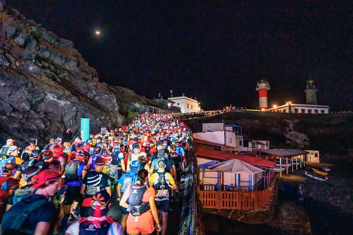 En el ambiente y en los corredores había mucha motivación por volver a correr por sus senderos. A las siete de la mañana en el Faro de Fuencaliente un serpentín de poco más de 1.000 corredores encendía sus frontales para comenzar a recorrer los 75 kilómetros que les separaban de la meta, en Los Llanos de Aridane.