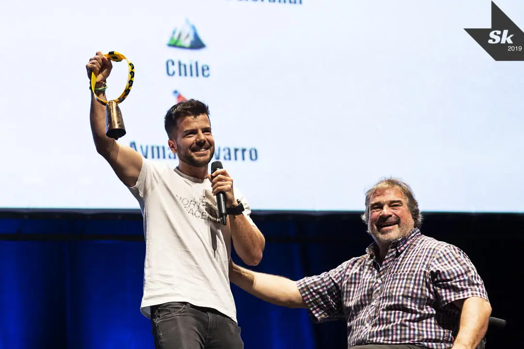 El rider Aymar Navarro, que desde los inicios estuvo apoyando Skimetraje Play Pyrenees, también se desplazó a Pamplona para presentar un editaje de su temporada austral 2019. No fue un avance ya que este verano Navarro y Txema Rull, su inseparable cámara, no grabaron para hacer un documental. Se dedicaron en gran medida a la fotografía para su proyecto #OlympusAndes. No obstante, la organización, representada por Fernando Vigo y Borja Valdés, quiso premiarlo por su fidelidad a Skimetraje Play Pyrenees y recibió el primer Cencerro Honorífico, que se entrega en ocho ediciones de Skimetraje.
