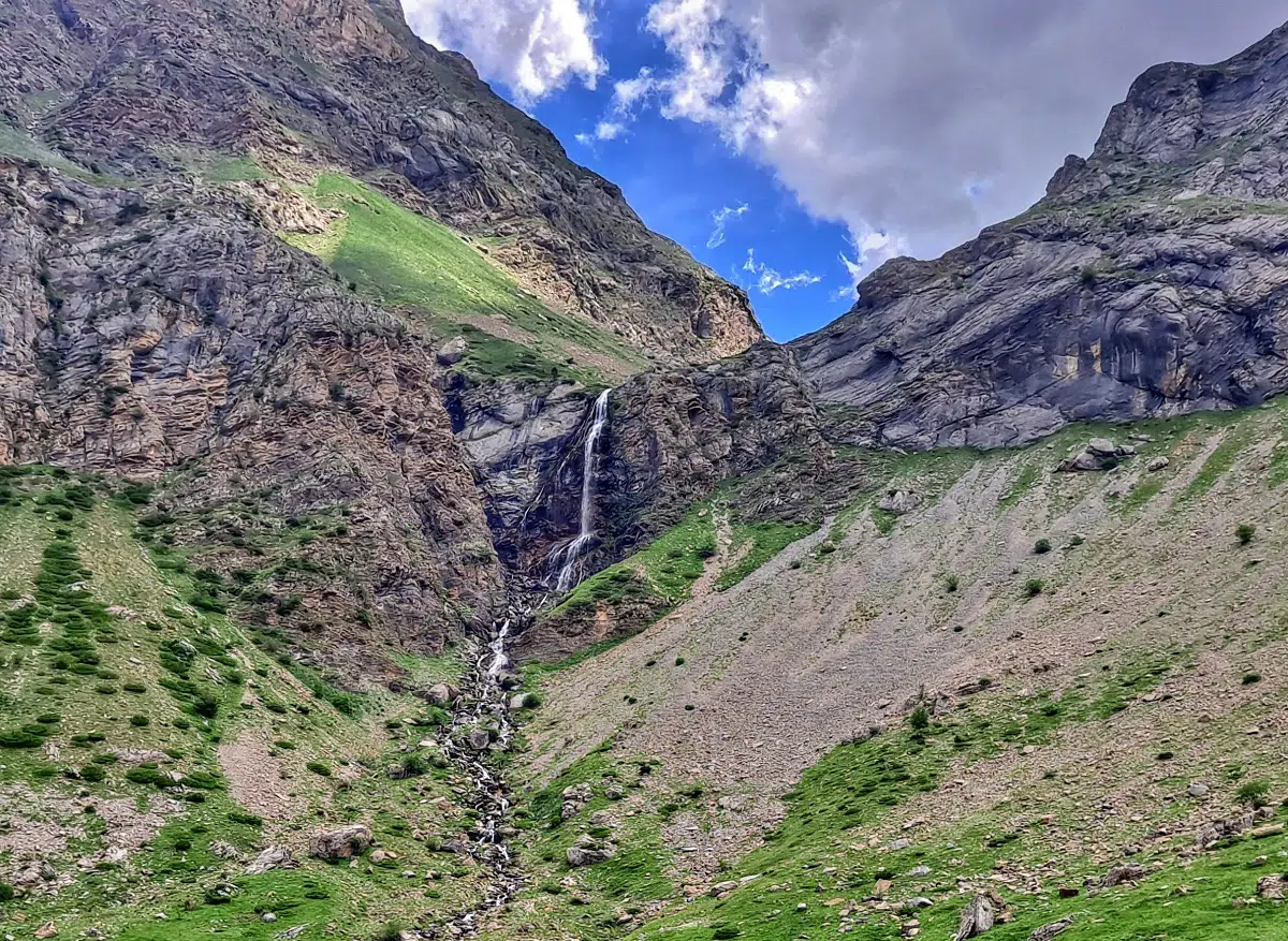 Es la excursión más asequible del Valle de la Ripera. En media hora llegamos hasta la Cascada del Salto de Tendenera cuyo caudal depende de la nieve y lluvia caída durante el invierno. El recorrido es agradable y discurre por una pista fácil de caminar y con poco desnivel de subida. Nos haremos una idea general del valle caminando hacia las montañas rocosas del Rincón del Verde. Durante el camino se pasa por un refugio de pastores que se utiliza durante los meses de verano. Por tanto, es fácil ver rebaños de vacas, caballos y ovejas de razas autóctonas de los Pirineos. La excursión familiar y más corta de las seis que nos proponen.