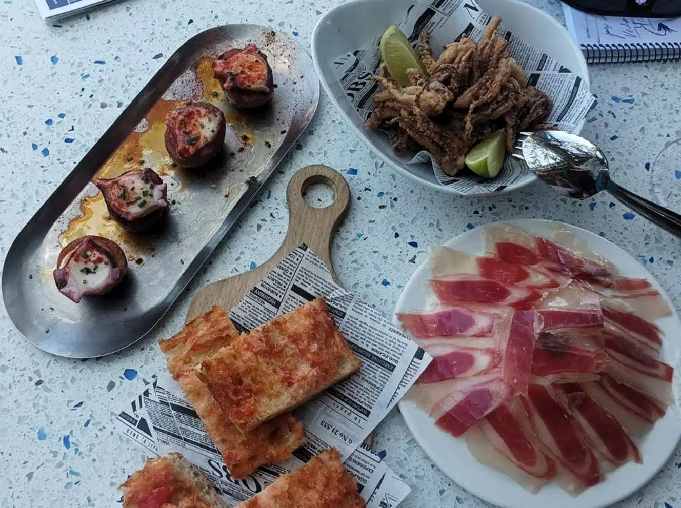 Tras la pequeña introducción, desgranamos nuestra experiencia. De entrada, fuimos recibidos con el cóctel Nordesiño (Nordés Gin, Montecillo Albariño, uva y tónica). Aperitivo ligero para hacer boca y sentarnos a la mesa, mientras tapeamos con unas patatas a la marinera con sombrero de pulpo, unas croquetas de gamba, un brioche de caldeirada de moluscos o una empanadilla de mejillón de batea escabechado y pisto tradicional.