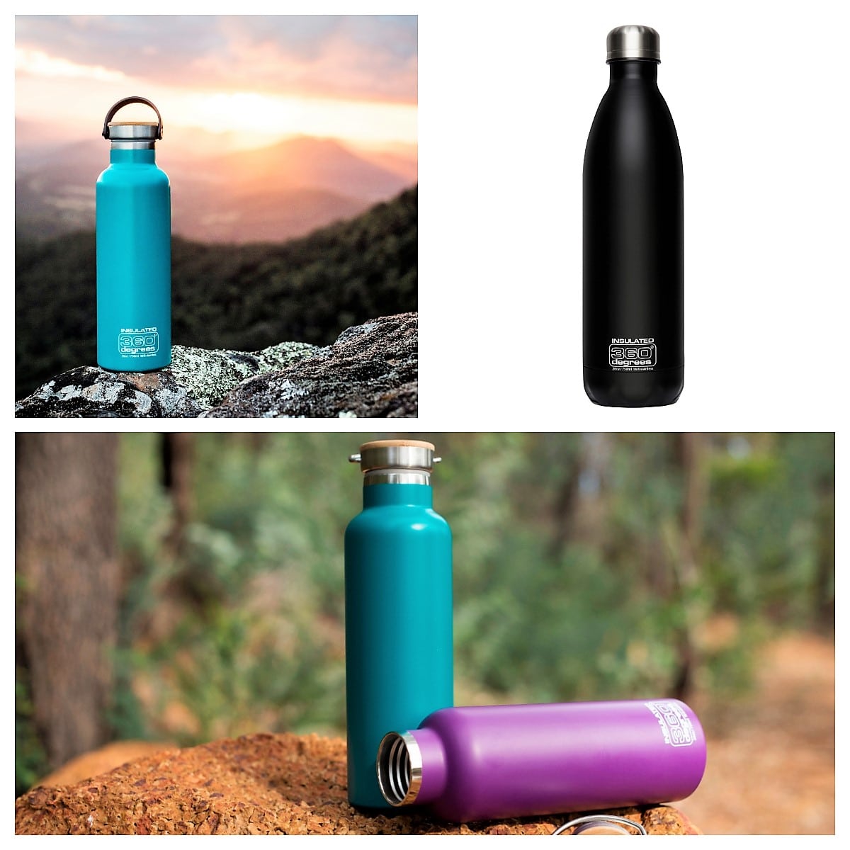 360 degrees también ofrece bidones aislados de soda con un diseño elegante, colores brillantes y nuevas impresiones. El aislamiento al vacío y la construcción de acero inoxidable de 18/8 de alta calidad permiten mantener las bebidas frías durante 24 horas y calientes durante 7 horas. Disponibles en 550 ml y 750 ml, estas botellas tienen el tamaño ideal para la hidratación durante todo el día, desde la clase de yoga hasta el trabajo pasando por las aventuras familiares.