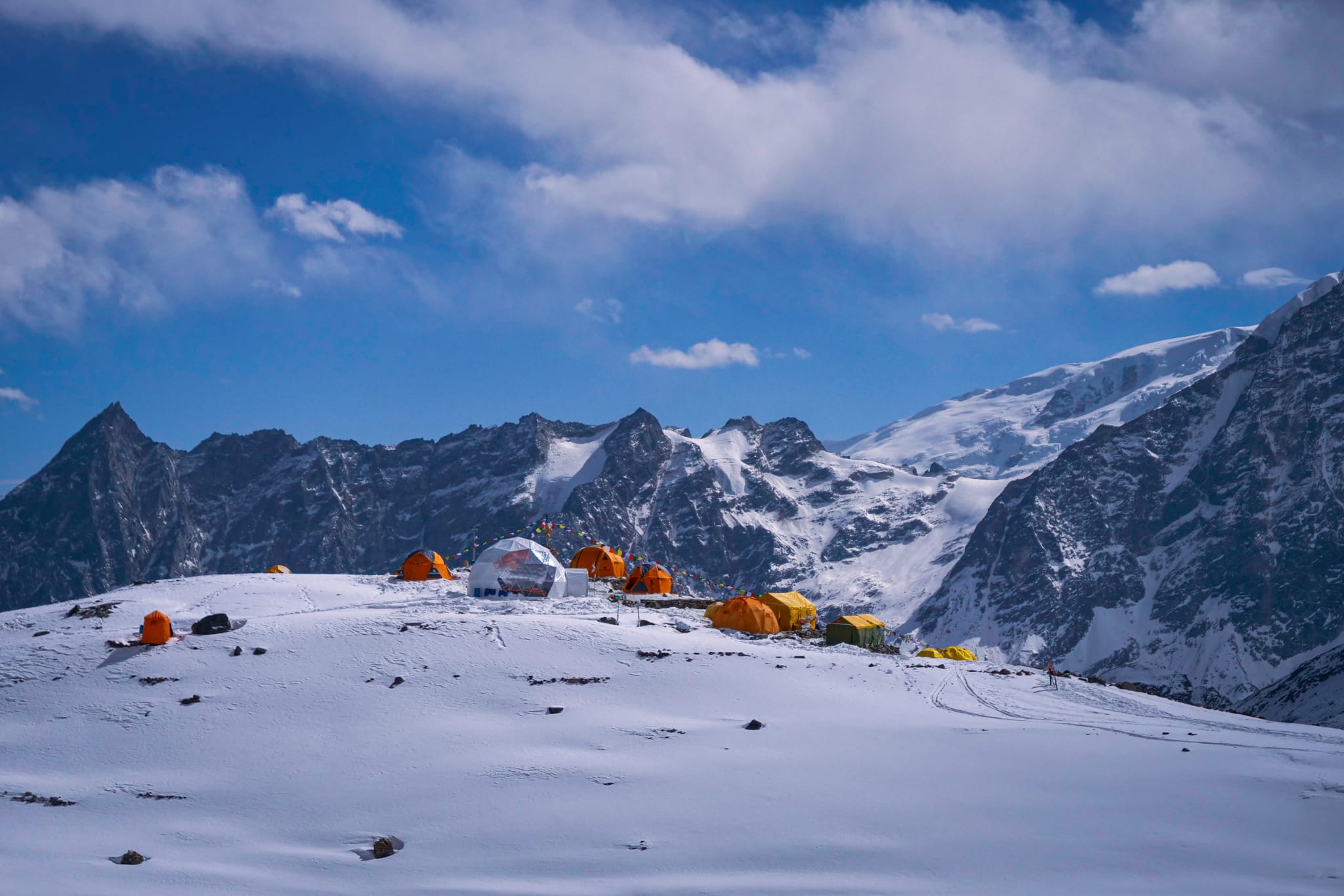 Las tiendas de campaña del equipo de Alex Txikon y Simone Moro en el campo base del Manaslu a 4.750 metros.