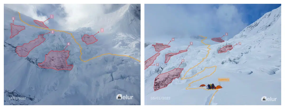 El propio Alex Txikon manifestó que «esta mañana hemos sobrevolado el CB de Manaslu y hemos sacado fotos que han permitido al equipo evaluar la situación comparando las imágenes con las del 25 de diciembre y el 5 de enero. Hay una cantidad enorme de nieve en la cascada y en las dos paredes, y no se aprecia ningún signo de avalanchas que hayan purgado de nieve la zona, lo que se traduce en un riesgo muy alto si subiésemos hasta allí. También hemos visto gran cantidad de nieve ventada en la zona del campo base, lo que es peligroso. Está claro que tanta nieve no se asienta y estabiliza en cuatro días de sol. Nos toca seguir esperando en Samagaun».