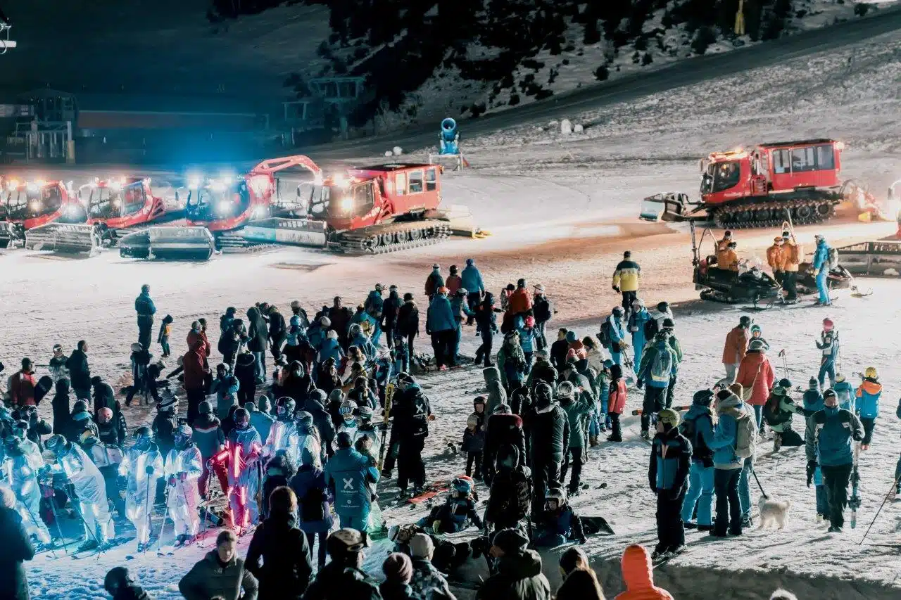 Desde el pie de la plataforma de Soldeu, se pudo observar el espectáculo que tuvo lugar en las pistas Ós, Bosc Fosc y Avet. En sintonía con la que fue la campaña de comunicación de la candidatura a los mundiales 2027, “Ya es hora de volver a encender las estrellas”.