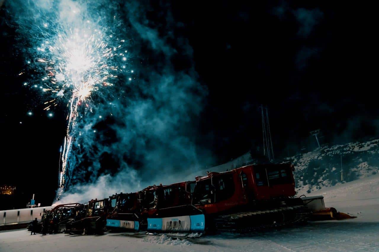El pie de pista de Soldeu es escenario de una demostración de máquinas pisanieve, una exhibición de demostradores, proyecciones led y fuegos artificiales.