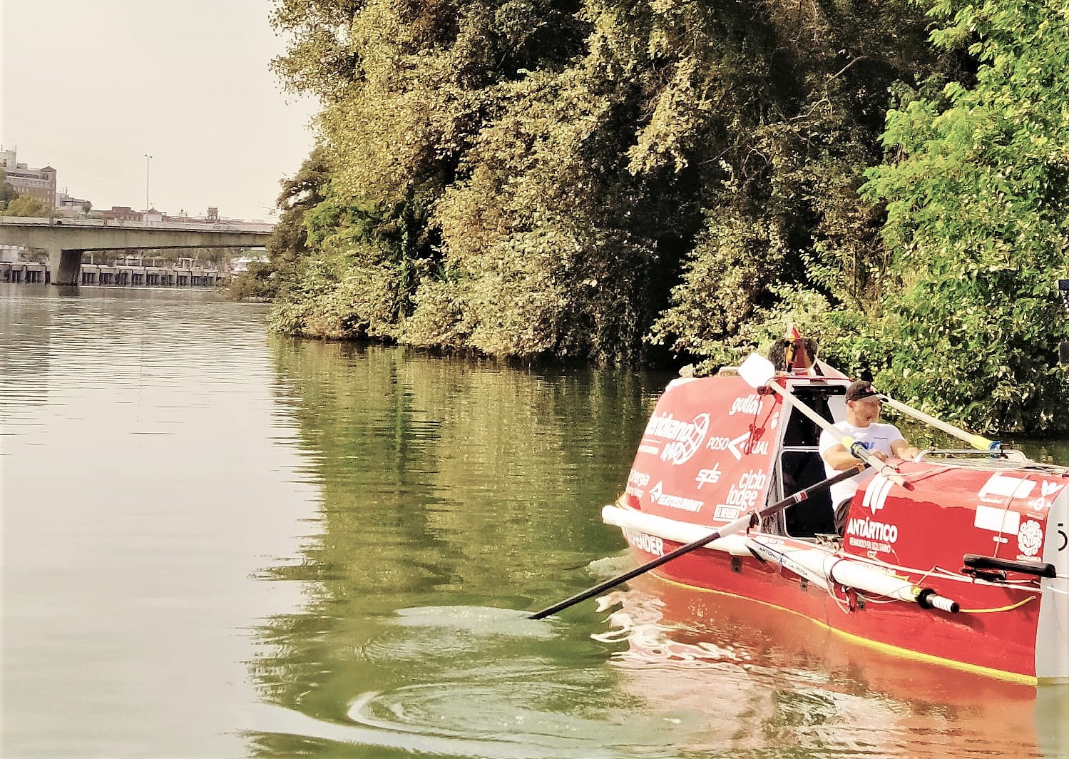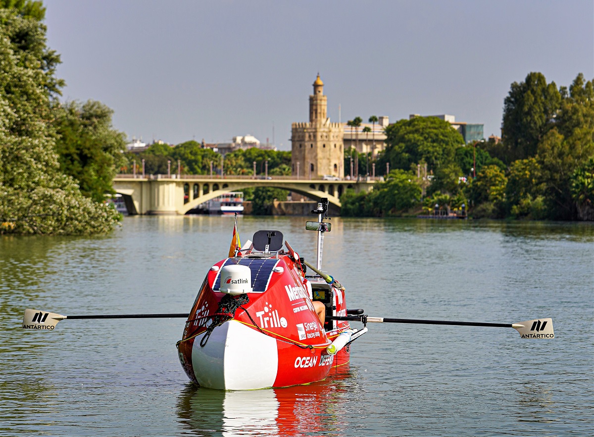 Antonio de la Rosa comenzó la travesía a remo desde Sevilla a Santa Cruz de Tenerife (Islas Canarias). Alrededor de 800 millas náuticas, unos 1.500 kilómetros, remando en su embarcación Ocean Defender a lo largo de unos 20 días. Los primeros 100 kilómetros hasta Sanlúcar De Barrameda (Cádiz) son navegando el cauce del Guadalquivir y despues izará su pequeña vela para navegar hasta las Islas Canarias. Para muchos intrépidos esto de por sí solo ya sería una aventura en mayúsculas. No obstante, para Antonio de la Rosa esta travesía sólo es un entrenamiento para comprobar el comportamiento de su embarcación de cara a su nuevo reto llamado Expedición Antártico. El Ocean Defender es el antiguo prototipo de Stand Up Paddle (SUP) con el que en agosto de 2019 cruzó el océano Pacífico.  El aventurero español tardó 76 días, 5 horas y 22 minutos en navegar a remo de pie y en autosuficiencia, entre San Francisco (Estados Unidos) y Waikiki (Hawai).