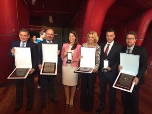 La ex esquiadora de alpino Carolina Ruiz, la snowboarder Queralt Castellet -ausente-, el presidente de la Real Federación Española Deportes de Invierno (RFEDI), May Peus España y las cuatro estaciones españolas de esquí que cumplieron 50 años la pasada temporada -Alto Campoo, Formigal, Baqueira Beret y Sierra Nevada- han recibido
