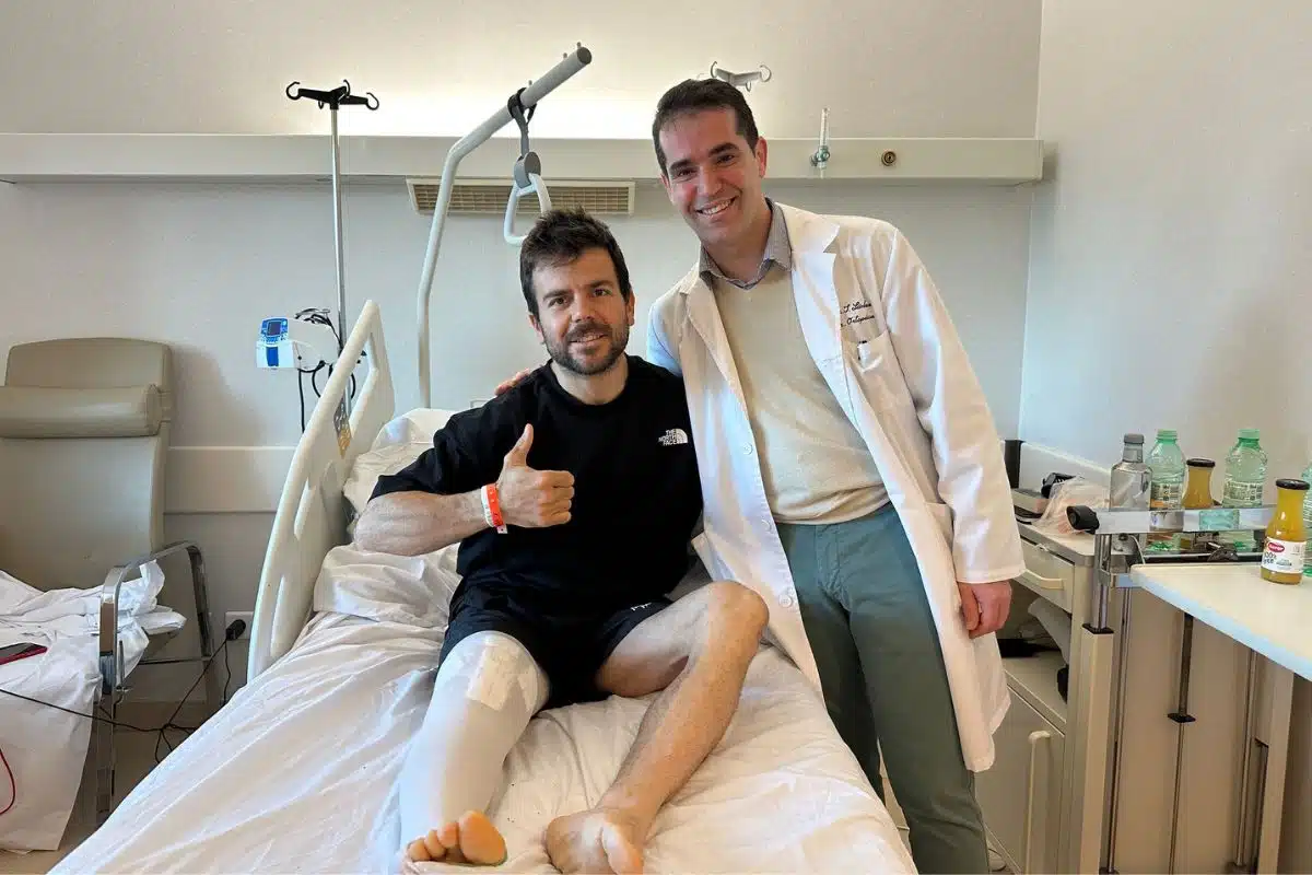 Aymar Navarro junto al cirujano que lo operó, el doctor Juan Sánchez Soler, responsable de la Unidad de Rodilla de Barcelona Trauma Institut, en el Centro Médico Teknon de Barcelona. (Copyrigh/Team Aymar)