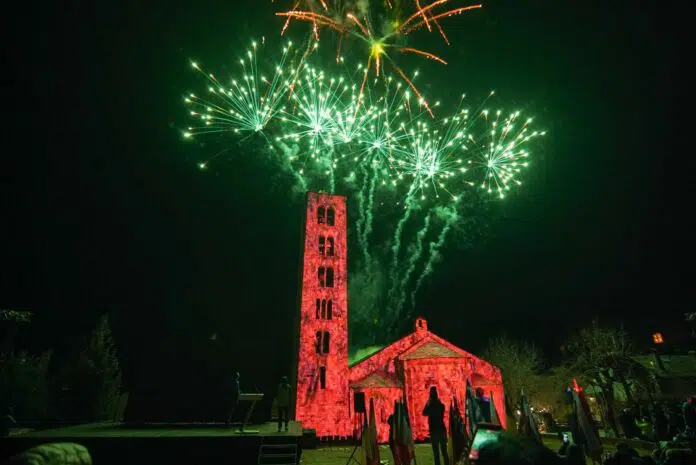 La bajada de fallas y un espectacular mapeo sobre la fachada de Sant Climent de Taüll fueron los momentos más destacados de la inauguración