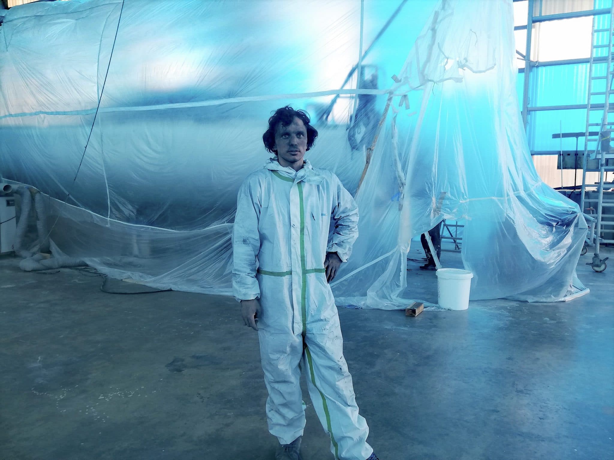 Dídac Costa y el equipo de tierra todavia tienen dos semanas de duro trabajo para dejar a punto el barco para navegar. (Copyright/Turiski)