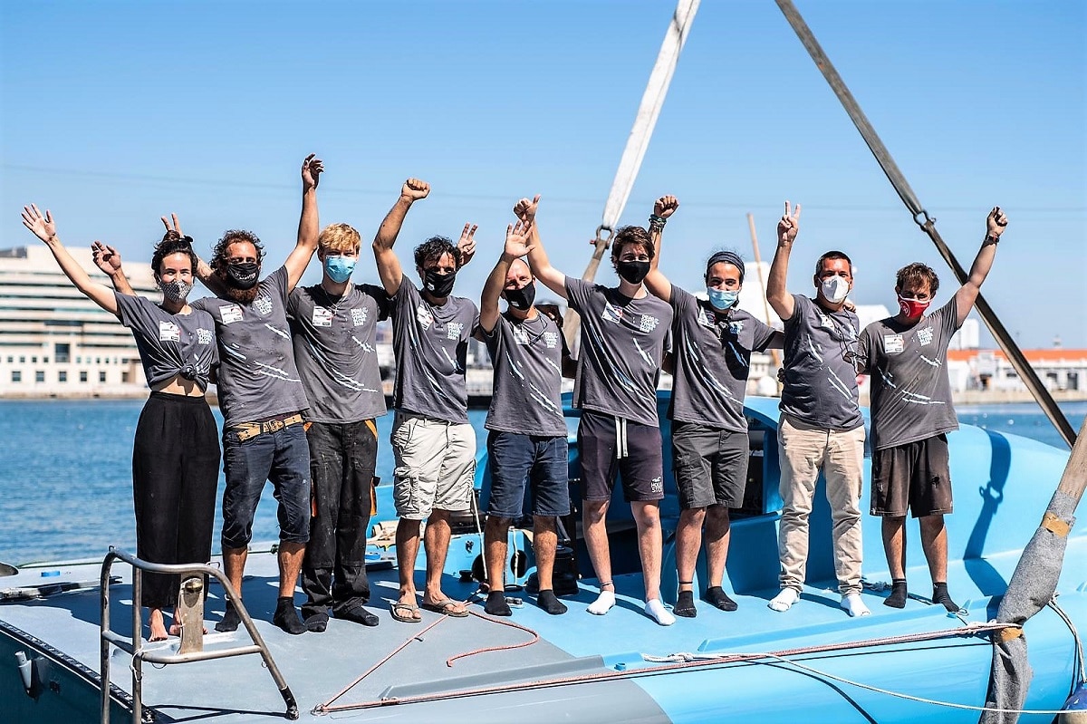 Parte del joven equipo que esta colaborando con Dídac Costa en la puesta a punto del One Plane, One Ocean. (Copyright/Marc González)