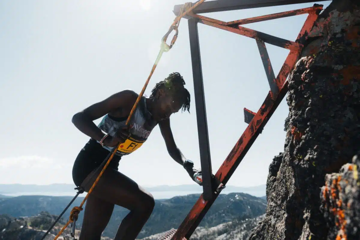 Joyce Njeru, concentrada y decidida, supera una de las secciones más técnicas del recorrido, con pasamanos incluido. (Copyright/@Rising.Story-@colinolivero)