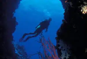 Entrada a un túnel submarino en las Islas Medes, un punto icónico para el buceo lleno vida marina oculta. (Copyrigh/José Luis Badillo Caro)