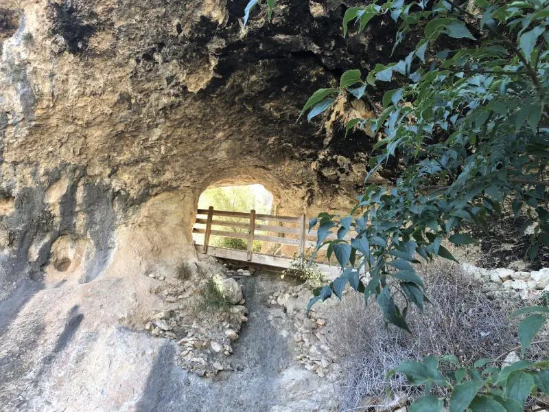 Puedes comenzar en Fleix o Benimaurell que se encuentran a 400m. Desde ahí descender hasta los 200m, para luego subir hasta 550 metros de altura. Este punto es de los más bonitos de la zona, ya que pasarás por el agujero de una gran roca llena de vegetación. Han puesto unas barandillas de madera muy bonitas para poder sujetarte. Desde aquí podrás ver el río Ebo enclavado entre grandes montañas. En este punto exacto te encuentras dentro del Barranco del Infierno. Sigue el sendero, todavía te queda el 70% del recorrido lleno de subidas y bajadas por infernales escalones. Las vistas de los diferentes barrancos son preciosas.