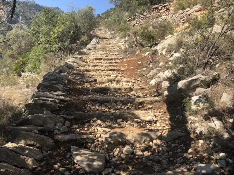La ruta circular es de gran exigencia física y concurre por sorprendentes paisajes. El singular entrono esta enclavado en un escenario natural de gran valor ecológico. El legado debe ser conservado y su máximo exponente son los de 6.800 escalones de piedra excavados por los mozárabes. La obra es conocida popularmente como La Catedral del Senderismo. Se trata del sendero PR-V 147 y es posiblemente la ruta de más singular de la Marina Alta y de la región alicantina situada entre los pueblos de Fleix, Campell, Fontilles y Benimaurel. El trazado del sendero tiene una longitud aproximada de 14,5 kilómetros.