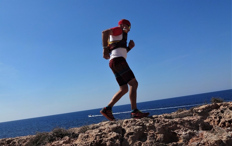 Correr por unos escenarios increíbles y disfrutar de la soledad del corredor de fondo en un entorno idílico. El horizonte marcado por el Mediterráneo de azul intenso y cerca de los acantilados de la isla. Otro aspecto que disfruté y me ayudó fueron los breves encuentros con algunos lugareños. Cuando paraba a comer un bocadillo en algún bar del camino y se interesaban por mi aventura. Fueron pequeñas bocanadas de aire fresco que me animaron a seguir mi recorrido con mejor estado de ánimo.