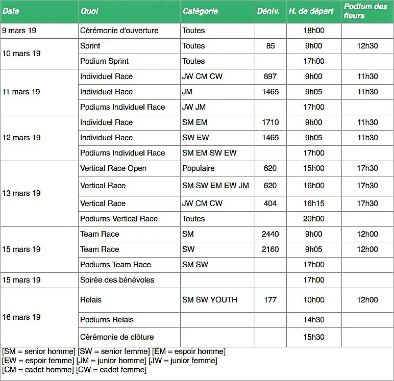 Programa del Campeonato del Mundo de esquí de montaña de Villars Sur Ollon, Les Diablerets, Suiza.