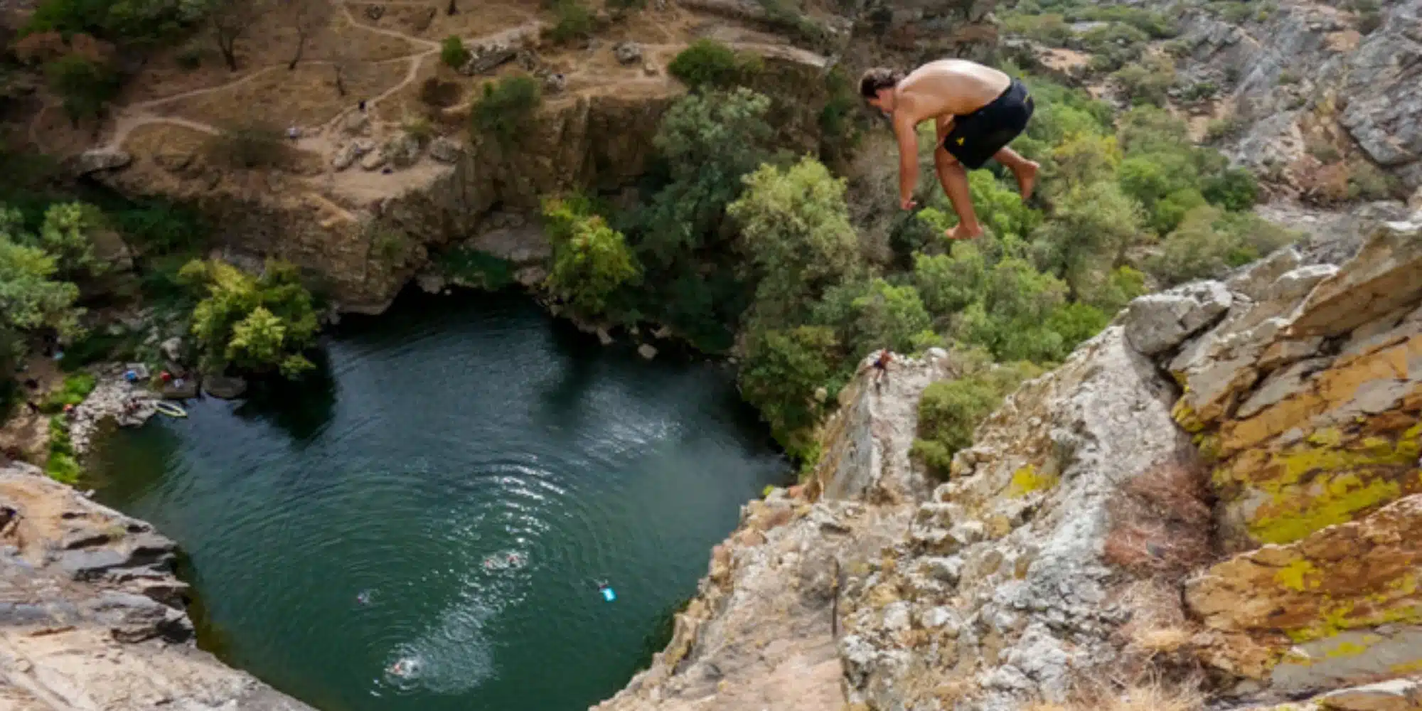 El atleta francés Côme Girardot, de tan solo 22 años, ha roto todos los esquemas en el mundo del death diving, dødsing o clavado mortal al establecer un nuevo récord en salto freestyle. Desde una altura de 44,3 metros, Girardot se lanzó en la emblemática cascada de La Cimbarra, en Jaén, alcanzando una velocidad vertiginosa de 106 km/h en una caída que duró apenas tres segundos. Este hito no solo supera sus propios registros previos, sino que también lo consagra como una de las figuras más destacadas en esta disciplina extrema. La Cascada de La Cimbarra, alimentada por las aguas del río Guarrizas, se encuentra en un entorno natural a solo 2 km de Aldeaquemada y a 11 km del Parque Natural de Despeñaperros, en el norte de la provincia de Jaén. Ubicada en los límites orientales de Sierra Morena, esta impresionante caída de agua forma parte de un paisaje de gran belleza y valor ecológico.