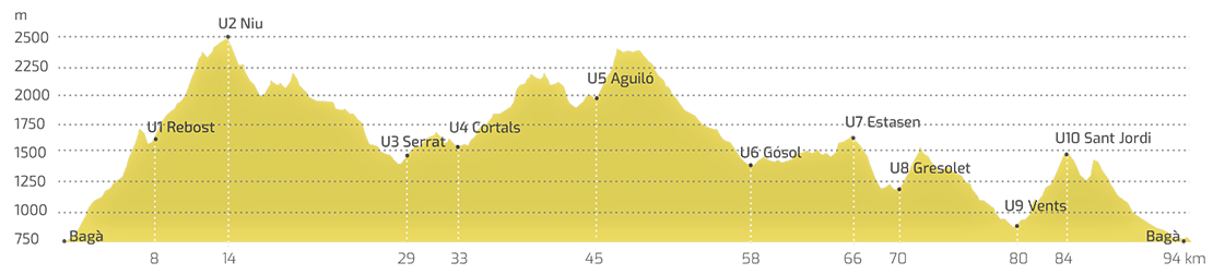 En su undécima edición, la Ultra Pirineu redujo su distancia. De los 110 Km y 6800m de la edición de 2018, que ganó Jessed Hernández, se volvió a parte del recorrido original (94km, 6.200m). A las 5h30 de la madrugada del sábado los 1.000 frontales de los corredores se encendían en Bagà para emprender la gran aventura de recorrer parte del Parque Natural del Cadí Moixeró. El bejarano Miguel Heras dominó la primera parte del recorrido que conoce como la palma de su mano. Tres victorias, los años 2010, 2011 y 2016, lo convierten siempre en uno de los favoritos. Detrás le seguían otros tres atletas viejos conocidos de la prueba: el ruso Dmitri Mityaev, el peruano Remigio Huamán, tres participaciones y el local Ivan Camps, que corría en casa por sexta vez.