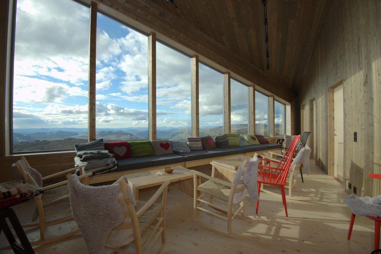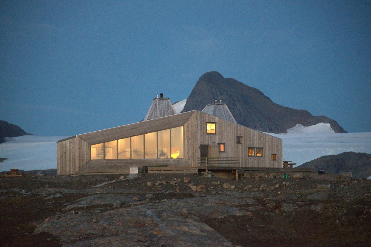 La construcción, que aparte de ser sostenible en su concepción, se ha integrado maravillosamente con su entorno y ya se ha convertido en lugar de peregrinación de apasionados de la arquitectura y de montañeros atraídos por un refugio que recuerda más a un hotel de lujo que a un discreto albergue de montaña. La singular cabaña de montaña, con unos espectaculares ventanales, ha sido diseñada por el despacho de los arquitectos Jarmund/Vigsnæs Arkitekter, que incorporan en buena parte materiales locales para adaptarse sin problemas al duro paisaje invernal.