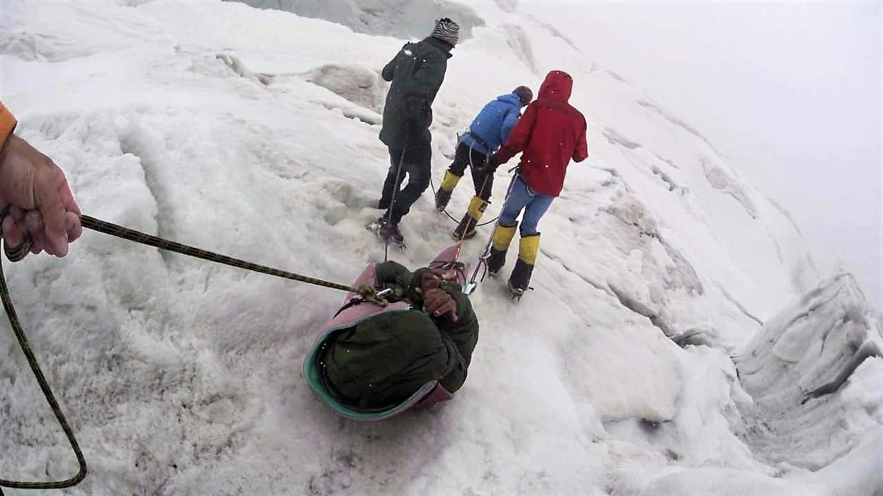 El alpinista lituano Saulius Damulevicius fue evacuado en helicóptero, tras descender con muchos problemas al campo base del Gasherbrum