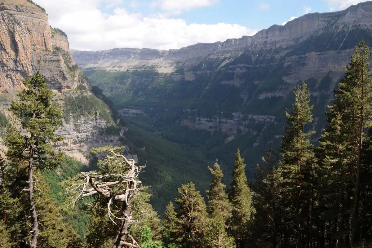 El parque es un mosaico de ecosistemas, con paisajes que van desde los valles glaciares de Ordesa, Pineta, Escuaín y Añisclo hasta las cumbres calizas del macizo de Monte Perdido. Las altitudes, entre los 1.500 y los 3.355 metros, generan una notable variación en la vegetación: bosques caducifolios, coníferas, praderas alpinas y zonas rocosas de alta montaña.