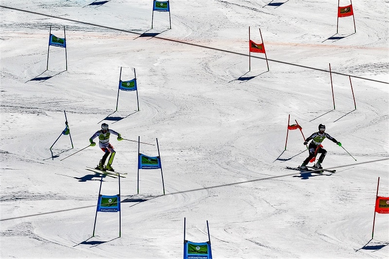 La competición de slalom paralelo -mixta dos hombre y dos mujeres- es una prueba espectáculo ideada hace algunos años por la Federación Internacional de Esquí (FIS), pero que carece de interés dentro del circuito. En la pista del Àliga se han marcado 25 puertas de gigante cada diez metros sobre 66 metros de desnivel. A pesar del interés de la FIS por darle “brillo”, la modalidad es “puro” divertimento competitivo para los esquiadores. La especialidad fue incluida por primera vez en el programa olímpico de los Juegos de Invierno de PyeongChang 2018.