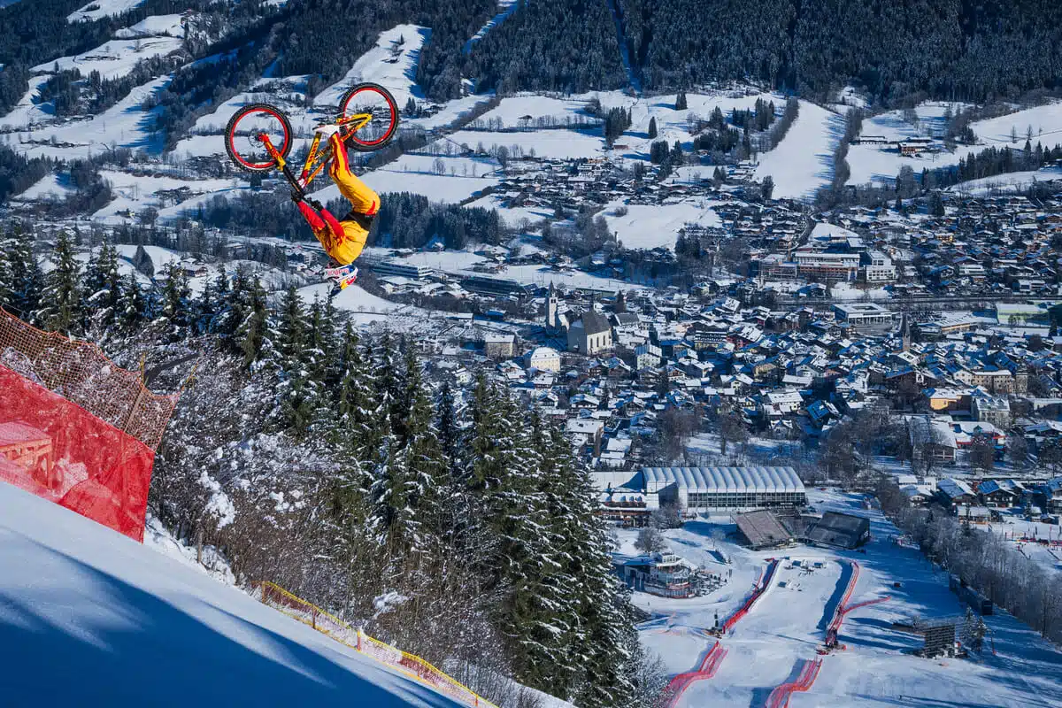 Fabio Wibmer (1995), el biker de lo imposible, hizo realidad su sueño de infancia. Wibmer desafió las pendientes de la famosa pista de esquí Streif en la estación de esquí de Kitbühel (Austria) y cumplió un reto que tenia en su mente desde hace años.