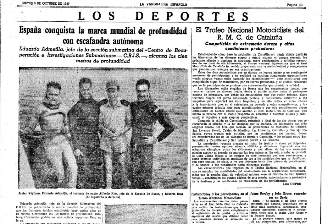 ? El año 1957, Eduard Admetlla fue el primer hombre en descender a 100 metros de profundidad con escafandra autónoma de aire comprimido.