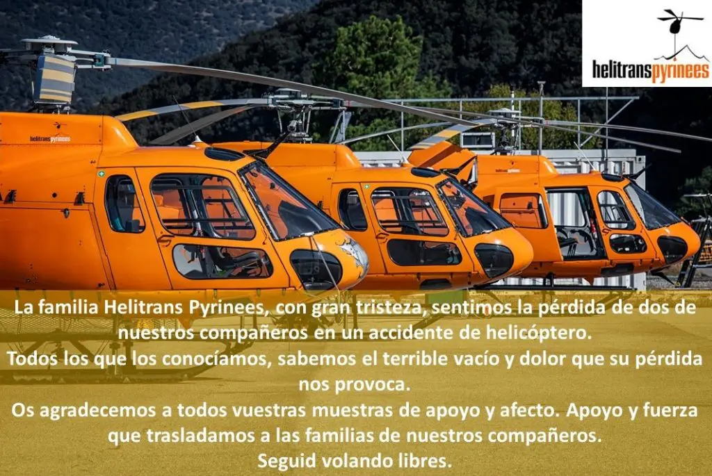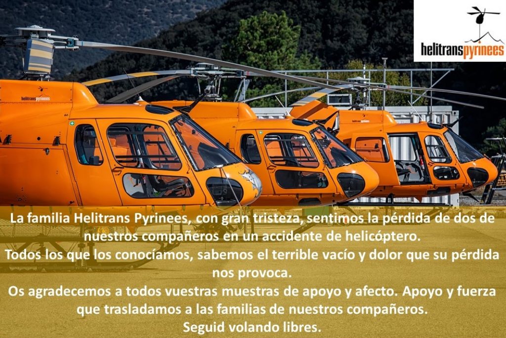 El piloto donostiarra Haritz Galarraga Gortazar, (San Sebastian, 1972) y el joven técnico Jordi Figueras Roma, (Vilafranca del Penedès, 1990) fallecieron tras estrellarse el helicóptero en el que trabajaban realizando tareas de mantenimiento del tendido eléctrico. El accidente laboral tuvo lugar en torno a las doce de la mañana en el término municipal de La Vansa i Fórnols, en la comarca leridana de Alt Urgell. Haritz Galarraga era un piloto con una dilatada experiencia en el sector, además del gerente y fundador de la empresa Helitrans Pyrines. El piloto vasco creó la compañía radicada en la Seu d’Urgell el año 2006. Jordi Figueras era un joven muy apreciado en el tejido social de Vilafranca del Penedès. Fue miembro de los Castellers de Vilafranca y también estuvo vinculado a los Diables de Vilafranca.