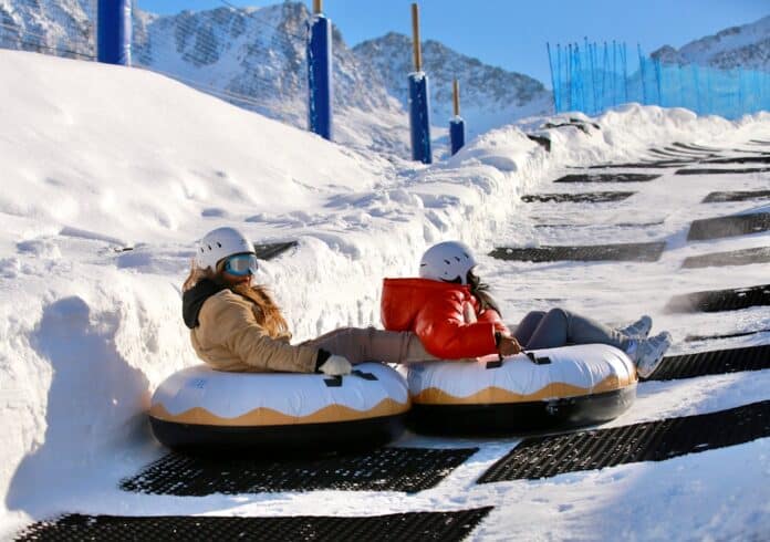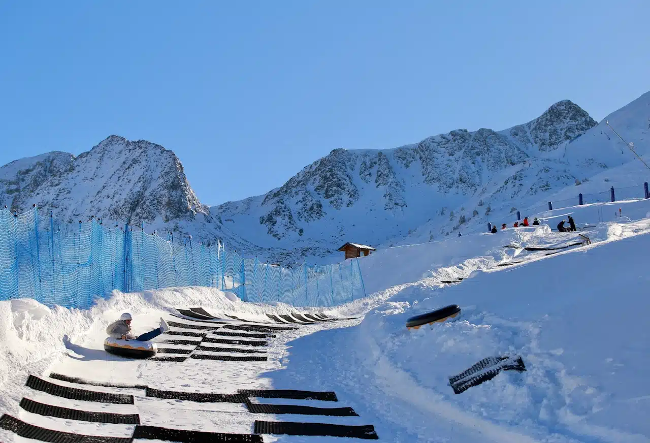 El Snowtubbing Pas de la Casa by Dots tiene una pista de 350 m con virajes, túneles y se pueden alcanzar velocidades de hasta 60 km/h.