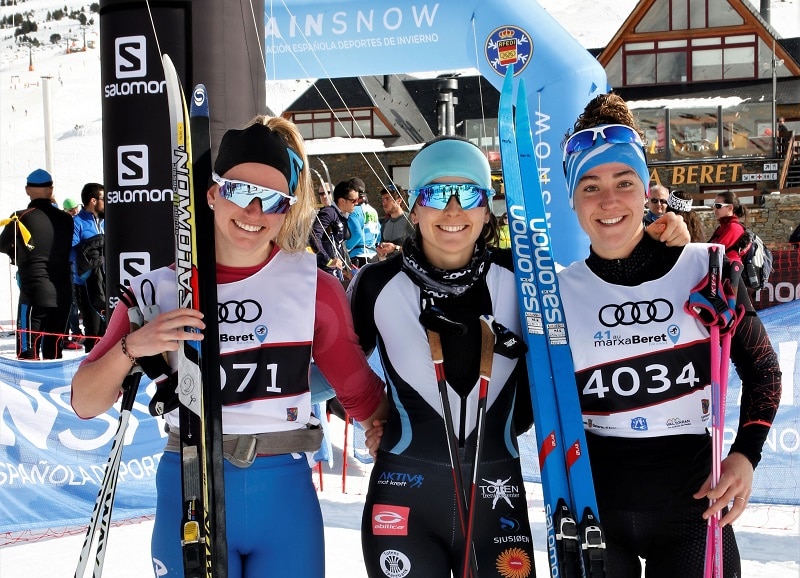 La local Marta Céster se convirtió en la primera mujer que gana tres pruebas consecutivas de la Marxa Beret de 42 km. La esquiadora de Viella dio todo un recital y aunque no forma parte del equipo de la RFEDI, en la actualidad es la mejor esquiadora de esquí de fondo española. Tras la retirada prematura de Laura Orgué, en 2015, el equipo femenino no tiene ningun referente. Céster sacó dieciocho minutos a la francesa Perrine Abadie, segunda classificada y la tercera posición para Henar Etxeberría.