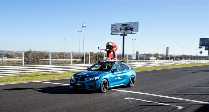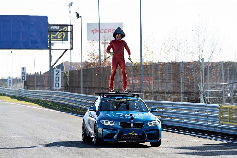 ? Jan Farrell ha realizado una sesión aerodinámica con esquís muy especial, a 180 km/h, en el circuito automovilístico del Jarama.