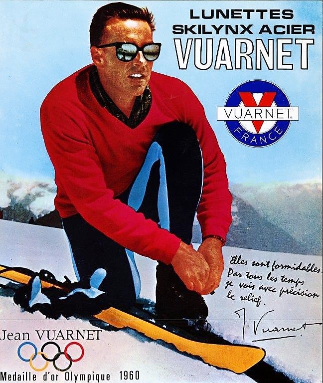 Tras el esquí Jean Vuarnet se convirtió en un exitoso hombre de negocios. Su nombre se asoció a un tipo de gafas que tomaron su apellido. El año 1957 el óptico parisino Roger Pouilloux buen aficionado a los deportes de montaña inventó una lente de gran protección para la práctica del esquí. La nueva lente llamada skilynx, que revolucionaria el sector de las gafas de sol, mejoraba la luminosidad y el contraste del relieve, lo que era vital para los esquiadores de competición de la época, que sufrían muchas salidas de pista como consecuencia de no seguir correctamente el relieve de un trazado.