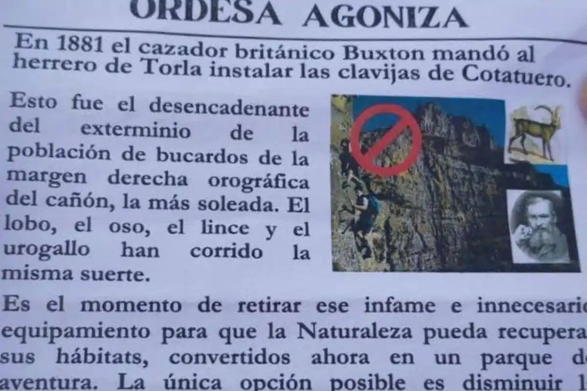 En una de las grabaciones, Vallés afirma sin tapujos: “Estamos cortando las clavijas de Cotatuero en el Parque Nacional de Ordesa y Monte Perdido para devolver a la naturaleza el santuario de los bucardos y los urogallos, que fueron exterminados por el cazador británico Lord Buxton. Ya era hora de reparar ese crimen atroz cometido contra la naturaleza de los Pirineos”. La acción ha sido reivindicada a través de una octavilla y un artículo en el blog de la asociación Pirineos Wilderness (pirineoswilderness.blogspot.com), donde Vallés denuncia la “agonía de Ordesa” y exige el fin de lo que califica como “parque de aventura”.