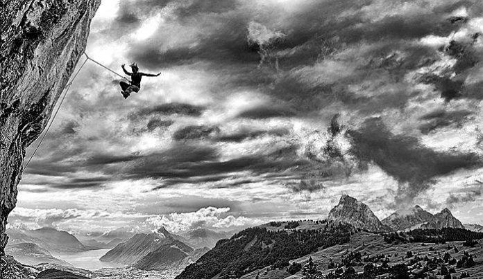La imagen del cartel de la onceava edición del Bilbao Mendi Film -Learning to Fly- es obra del fotógrafo austriaco Rainer Eder. La fotografía fue fruto de un cúmulo de circunstancias, como destaco el propio autor en su presentación. “Estaba fotografiando para Mammut, la conocida compañía suiza de material de escalada . El tiempo no era muy bueno aquel día. Tras un par de horas disparando, se nos vino encima una gran tormenta y tuvimos que pararlo todo. Volvimos al rato y fue una sorpresa encontrarse con que la roca estaba seca y que la vista sobre las montañas era perfecta. Pedí a Babsi (Barbara Bacher) que saltara sobre la cuerda y, con la combinación del precioso paisaje de fondo, hice posible esta toma”.
