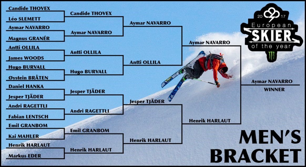 El camino de Aymar Navarro para hacerse con el ESOTY le ha llevado a enfrentarse a grandes nombres del freeski europeo entre los que destacan las figuras del francés Candide Thovex en cuartos de final, Antti Ollila en semifinales y al propio Henrik Harlaut en la finalísima y ganador del premio en 2016. Aymar ha superado a Harlaut por un estrecho margen de votos, que no se ha hecho público. Su victoria pone de manifiesto el gran apoyo social con el que cuenta y el aprecio de un sector que ha sabido valorar su dedicación y constancia para hacer del esquí su profesión.