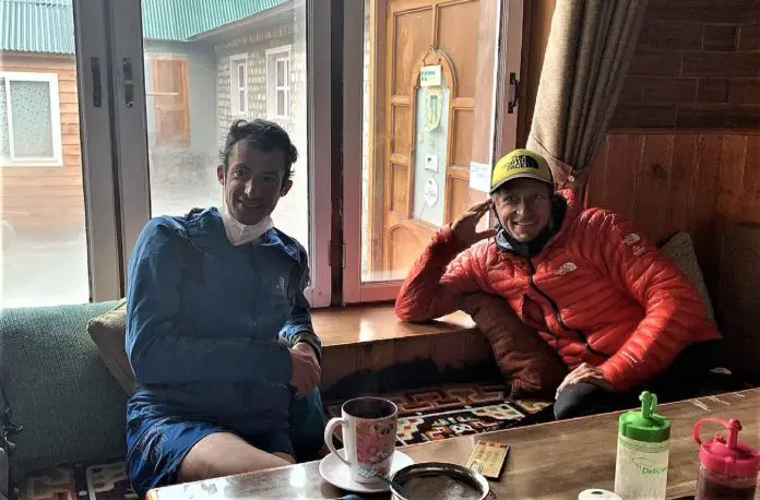 Kilian Jornet y David Goettler finalizan la primera aclimatación conjunta para ascender el Everest y regresan al lodge de The Edelweiss de Pheriche, a 4.200 metros.