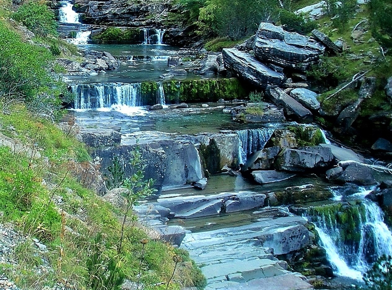 Desde la que inicia el valle, en el Circo de Soaso, conocida como la «Cola de Caballo», y que se abre en un abanico blanco que se desliza roca abajo, pasando por las Gradas de Soaso, una sucesión de múltiples cascadas escalonadas, hasta las cascadas del Estrecho y la Cueva, enormes saltos de agua que han labrado toboganes zigzagueantes en la roca caliza. Un espectaculo natural donde el agua es el gran protagonista.