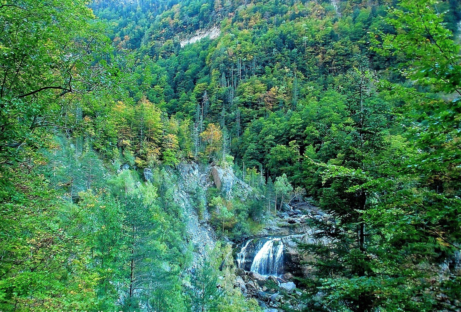 Poco a poco vamos ganando altura para llegar, junto a la fuente de Arripas, a un mirador sobre la cascada Arripas. Desde aquí podemos retornar al aparcamiento de Ordesa por un camino que discurre por la margen izquierda del río Arazas. Si continuamos, observaremos que el bosque de hayas se hace cada vez más frondoso, al tiempo que caminamos por un valle más estrecho. Aquí disfrutaremos de las magníficas cascadas, como la del Estrecho. Continuamos y nos introducimos en el bosque de las Hayas. La pista se convierte en senda y los prados comienzan a tener protagonismo.